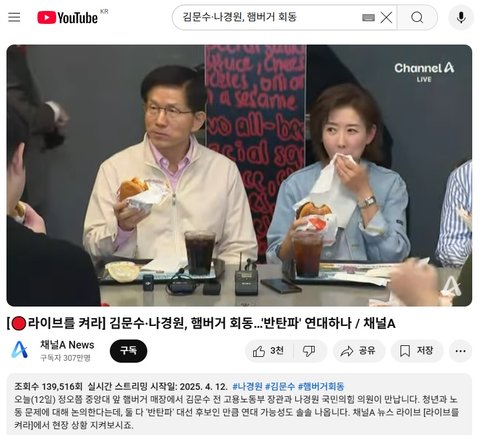 [펀글(퍼온 글)] '햄버거 회동' 김문수·나경원 …"어느 후보와도 협력" - 한국경제 노정동 기자 (2025.04.12(토) 오후 17:08)