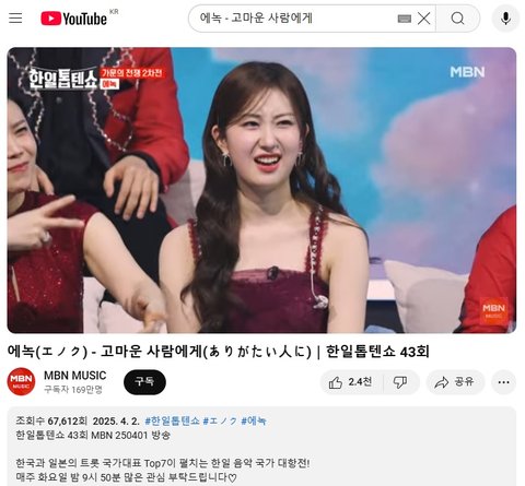 (사진6 설명) 에녹(エノク) - 고마운 사람에게(ありがたい人に)|한일톱텐쇼 43회
