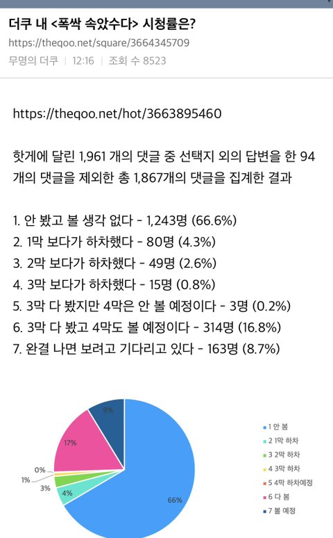 더쿠에서 폭싹속았수다 봤냐 안 봤냐 글 핫게 갔는데 그 댓글 다 집계해서 이런 글 올리고ㅋㅋㅋㅋ