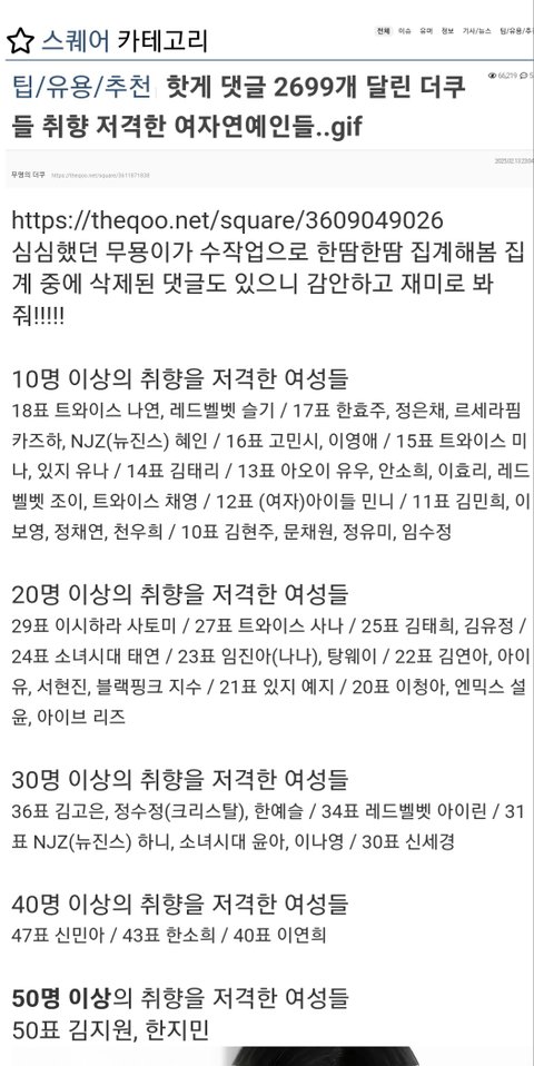 이런 집계 글이 올라옴.... 여기서 웃긴건 1위가 수지 라는거임 저 글 순위보면 수지가 앞도적으로 400표 2위가 180표 라서 누가봐도 수지팬이 뽕차서 쓴 글일탠데 ....