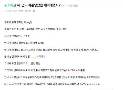 언니가 파혼당했는데 자기 미래가 걱정된다는 여자