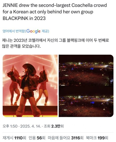 제니 코첼라 관중 ㄷㄷ