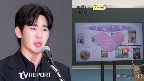 범규는 '꽃보다 남자', '응답하라 1994' 등을 인생 드라마로 꼽으며 다양한 작품을 언급했지만 김수현이 주연을 맡았던 tvN '눈물의 여왕'의 포스터 속 그의 얼굴은 모자이크로 가려졌다. 또한 김수현이 주연한 SBS '별에서 온 그대'와 '눈물의 여왕'은 이름조차 언급되지 않았고 포스터 역시 전지현과 김지원만 등장하는 버전으로 대체됐다.