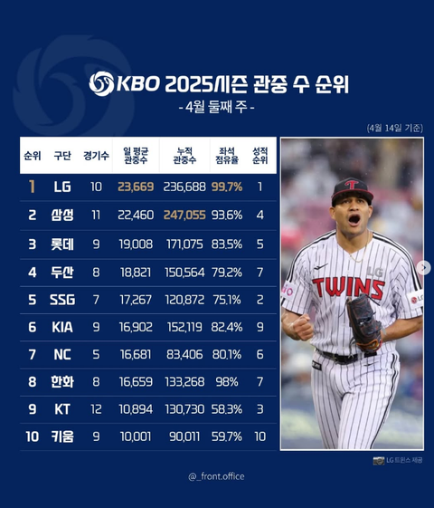 프런트 오피스) 2025 시즌 KBO 관중순위