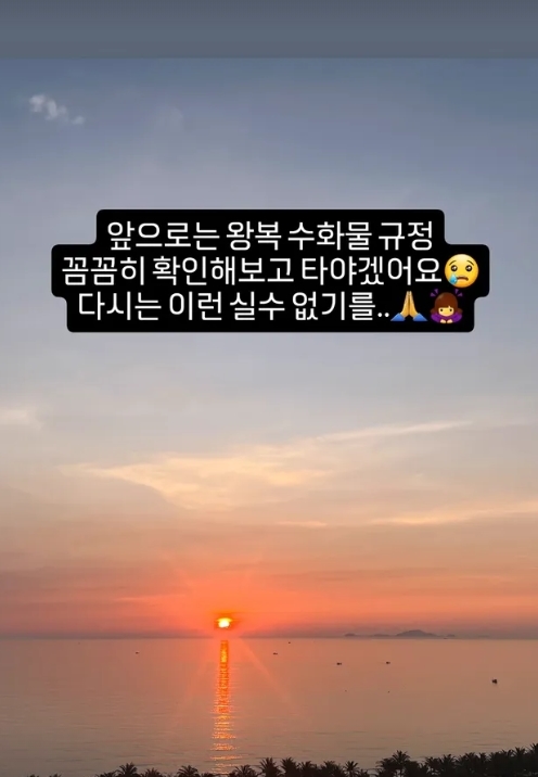 박슬기는 4월 14일 소셜미디어를 통해 "앞으로는 왕복 수하물 규정 꼼꼼히 확인해보고 타야겠어요. 다시는 이런 실수 없기를"이라는 글을 남겼다.