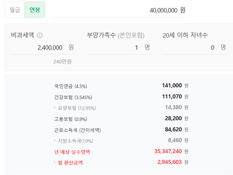 현재 세금으로 월에 약 40만원을 국가가 거두어감.