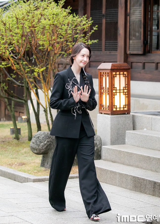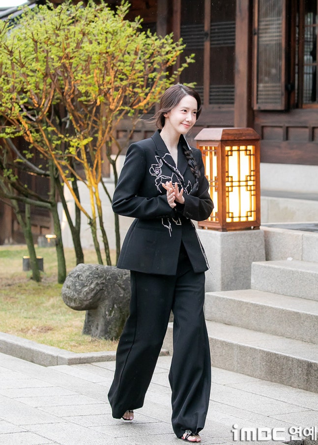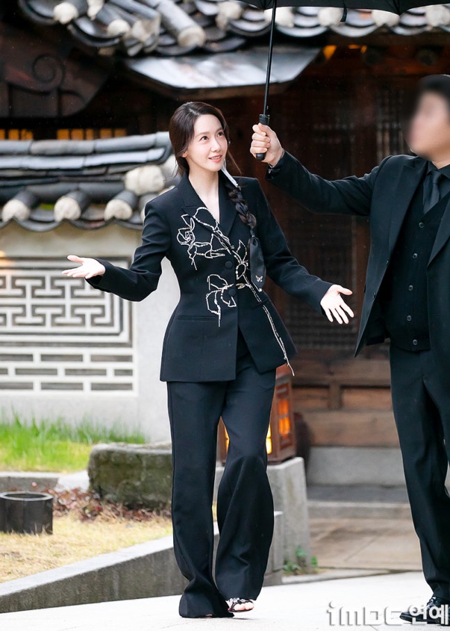 이날 윤아는 비가 오는 날씨에도 불구, 한국가구박물관을 걸었다. 반짝이는 포인트가 돋보이는 재킷에 와이드 슬렉스. 심플하면서 고급스러운 올블랙 매니시 슈트에 나비 무늬가 돋보인 댕기머리로 포인트를 줬다. 윤아는 다양한 포즈와 러블리한 사슴 미소를 건네며 비 오는 봄 날씨를 즐겼다.