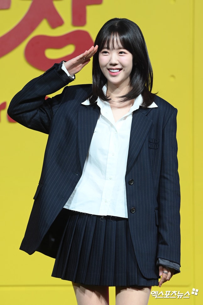 이날 기자간담회에 참석한 배우 지예은이 포토타임을 갖고 있다.