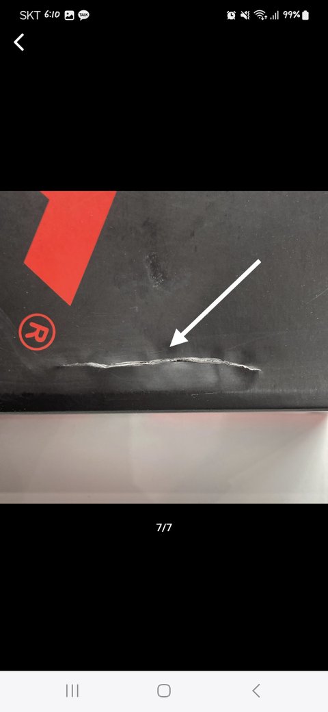 4. 검수 진행했으나, 상기 사진과 같이 하자 발견하여 이 상태로는 구매자가 상품을 못 사겠다고 함. 결국 할인 판매도 실패.