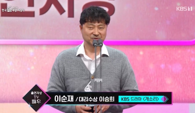 이날 참석하지 못한 이순재 대신 소속사 대표 이승희 씨가 대리수상에 나섰다.