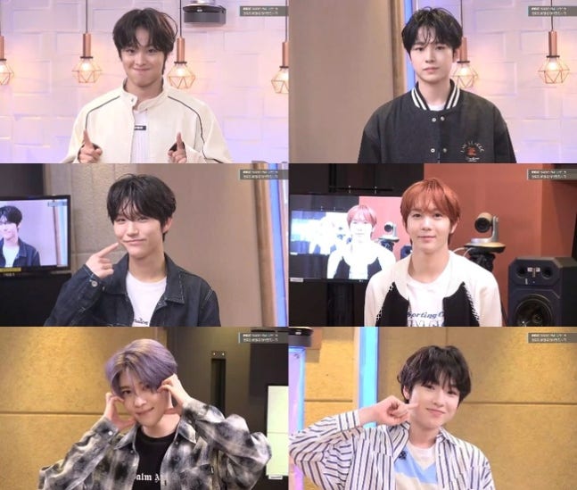 왼쪽 위부터 리쿠, 유우시, 재희, 료, 시온, 사쿠야(MBC FM4U ‘정오의 희망곡 김신영입니다’ 캡처)재희는 사쿠야를 택했다. "그렇게 웃긴 친구는 아닌데 평소에 한번씩 터뜨려주는 친구가 진짜 재미있잖나. 한방이 있다"고. 료는 "차갑게 생긴 사람이 좋다"며 유우시를 골랐다.