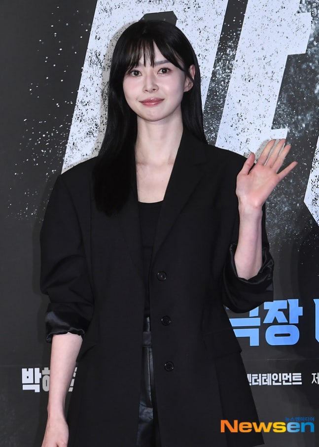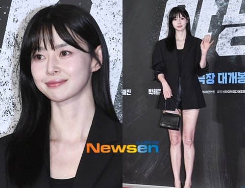권나라이날 권나라는 오버핏 블레이저에 초미니 팬츠를 매치한 패션으로 시선을 사로잡았다. 권나라는 올블랙과 대조되는 새하얀 피부와 우월한 각선미를 과시해 감탄을 자아냈다. 오른쪽 무릎 위 붙은 반창고도 눈길을 끈다.