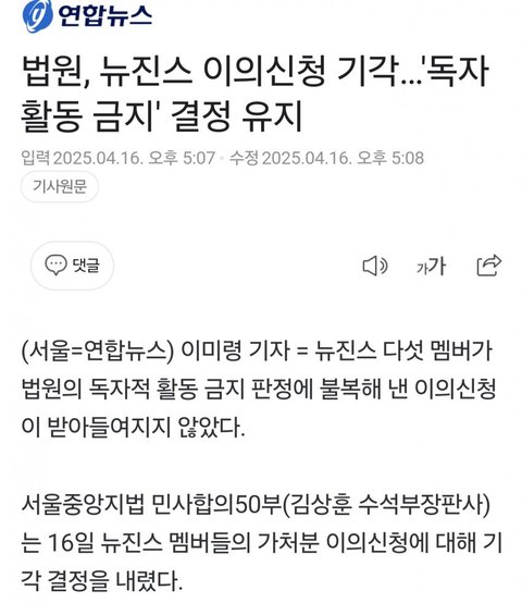 [속보] 법원 뉴진스....