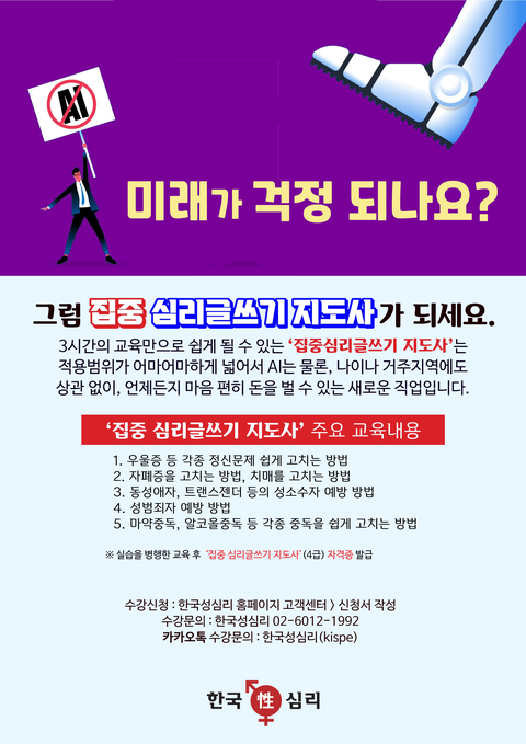 미래가 걱정된다면 '집중 심리글쓰기 지도사'가 되세요