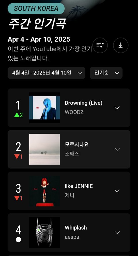 유튭 뮤직 4위거면 미쳤네... 6개월 지난 노래인데