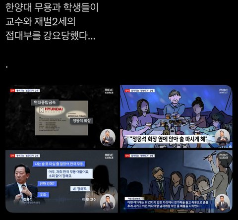 와 나 이거 최근에 판에서 어떤 판녀가 딱 이내용으로 자기 친구들 예체능인데 접대 강요받았나고 글 썼는데 댓글로 지우라는 식으로 말해서 그 글 사라졌었거든...ㅁㅊ네