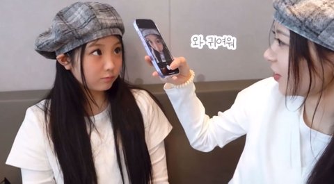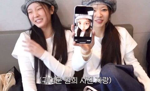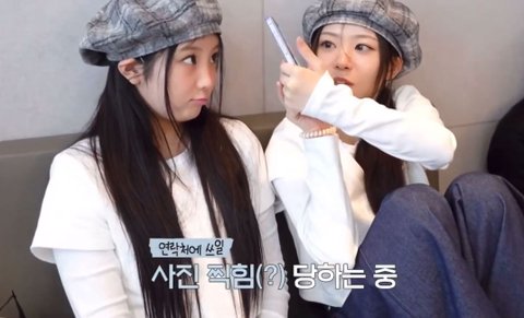 모카가 연락처에 쓸 원희 사진 찍는 중...