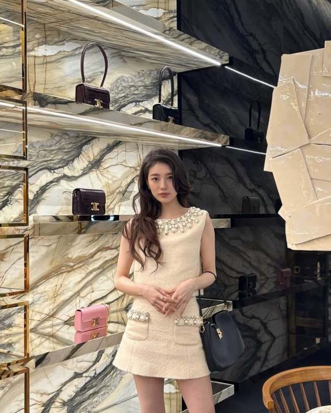 수지 소셜미디어공개된 사진 속 수지는 명품 브랜드 C사 행사에 참석해 포즈를 취했다.