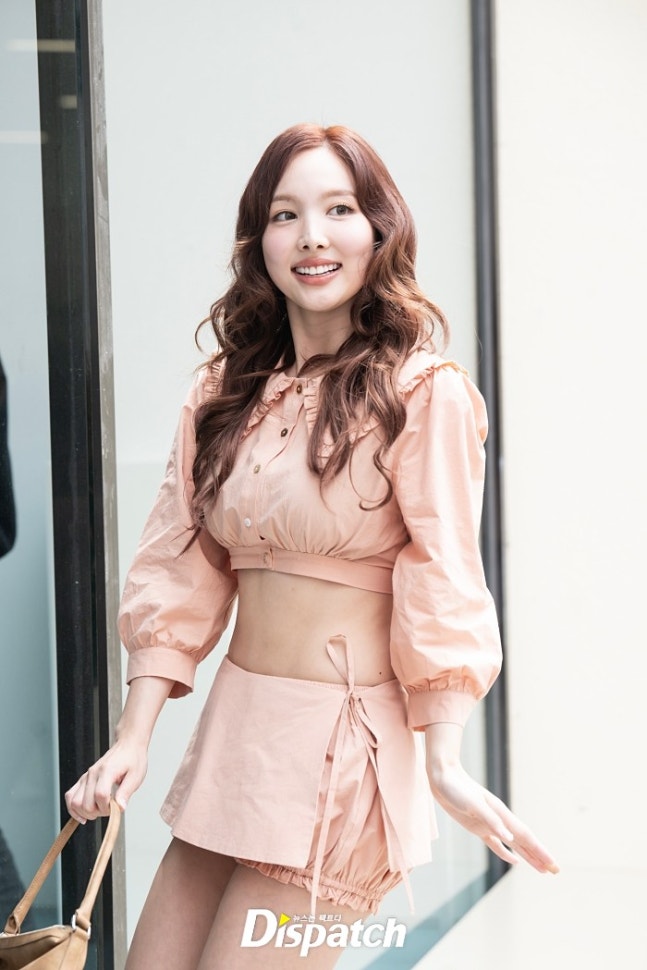 나연은 크롭탑과 숏팬츠로 멋을 냈다. 날씬한 몸매가 돋보였다.