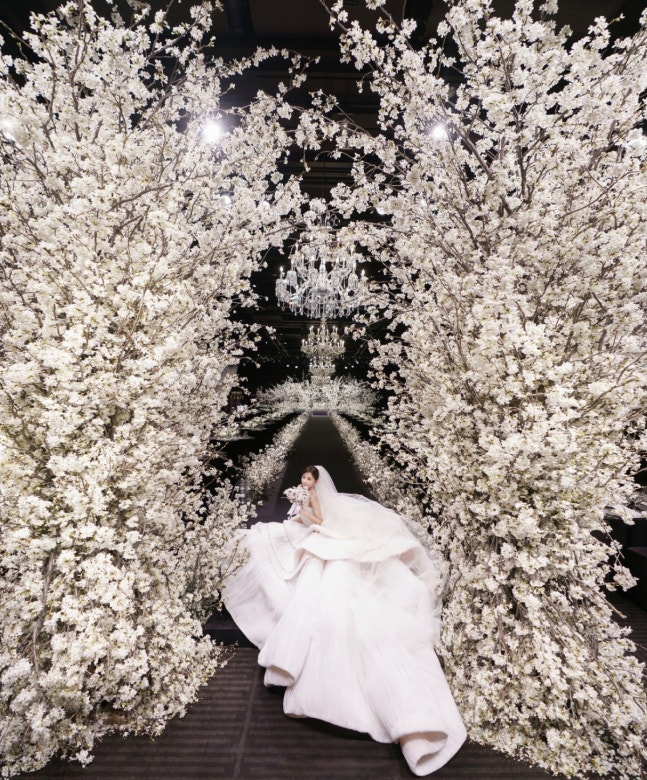 효민이 1부 본식에서 입은 화려한 장식의 드레스는 국내 단 2벌뿐인 것으로 전해졌다. /사진=효민 인스타그램 갈무리효민과 김 전무는 지난 6일 서울 중구 신라호텔에서 비공개 결혼식을 올렸다. 효민은 비연예인 남편을 배려해 얼굴을 가린 사진만 SNS(소셜미디어)에 올렸는데, 결혼식 이후 남편 얼굴 정면이 담긴 단체 사진이 공개돼 눈길을 끌었다.