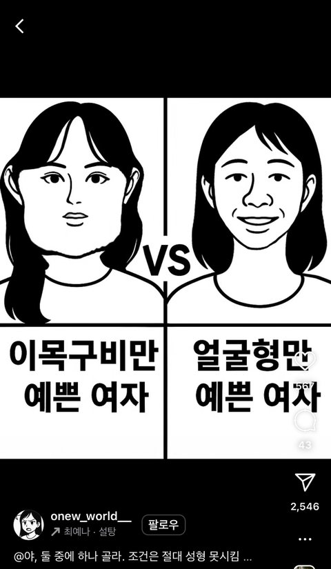 여자 얼굴 밸런스 게임 너희는 둘중에 뭐임?