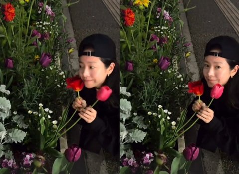 공개된 영상 속 한지민은 길가에 핀 꽃밭을 배경으로 포즈를 취하고 있는 모습. 꽃을 꺾지 않고 조심스레 얼굴을 가져다 대는 모습이 인상적이다.