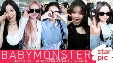 그룹 베이비몬스터(BABYMONSTER) 치키타, 파리타, 아현, 라미, 로라가 일본 일정 차 18일 오전 인천국제공항을 통해 출국하고 있다. 2025.04.18