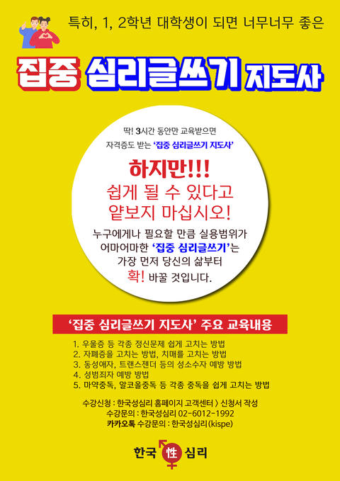 대학생을 필수 추천 '집중 심리글쓰기 지도사'