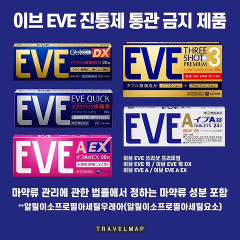 일본여행 필수 구입 의약품, 이브 EVE진통제 국내 반입 금지 되었습니다.