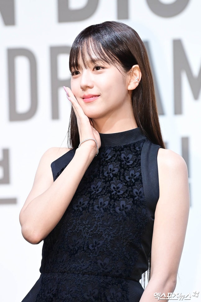 이날 행사에 참석한 블랙핑크 지수가 포토타임을 갖고 있다.
