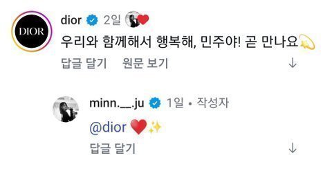 디올이 민주와 함께해서 행복하다고 댓글로 마음 표현했어