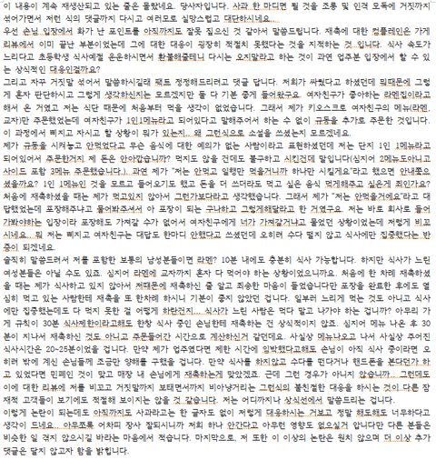 느리게 먹는 손님은 어떻게든 까내리네