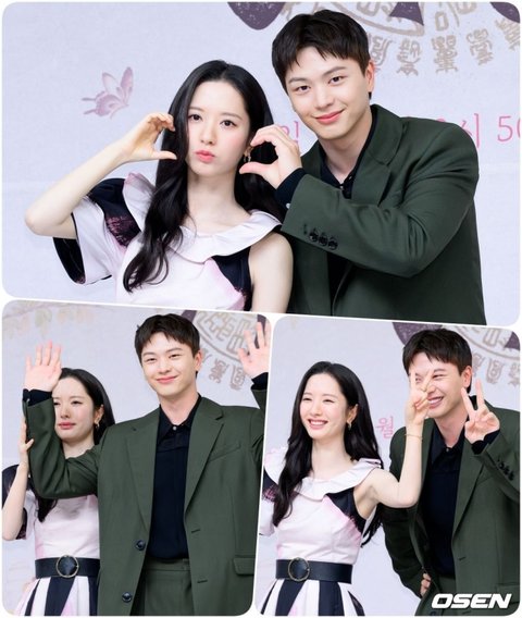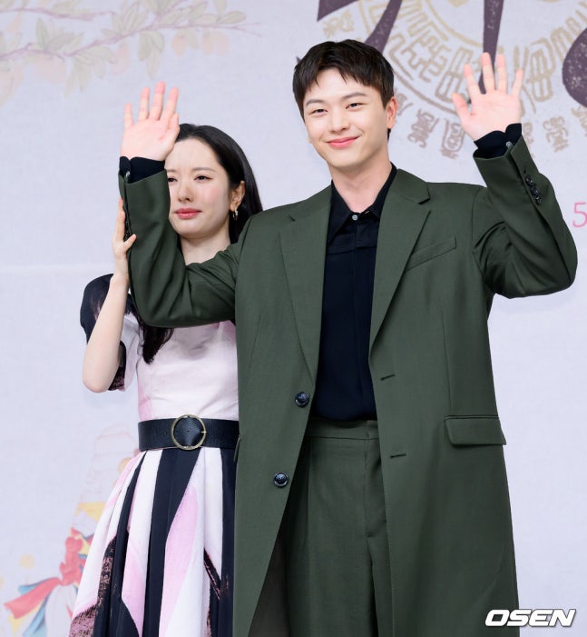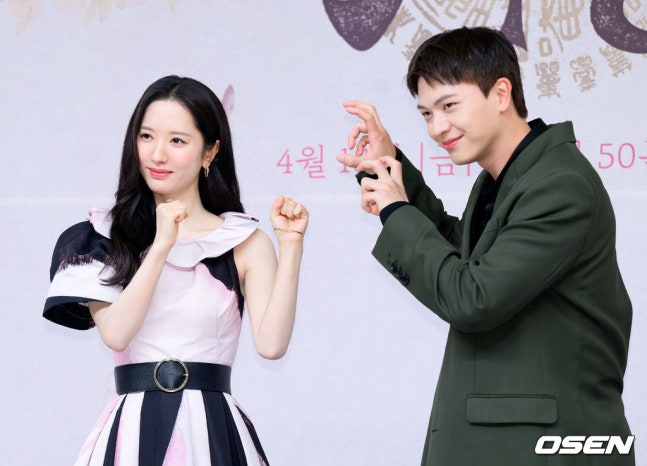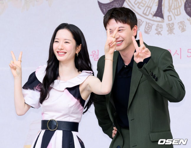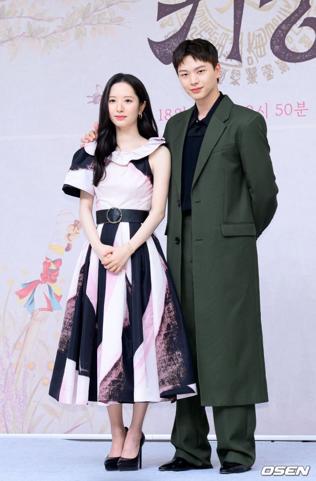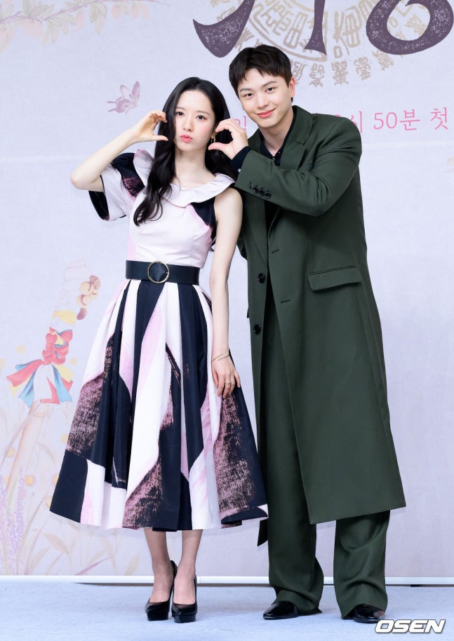 기자간담회에 앞서 포토타임이 진행됐다. 이날 육성재는 올리브 그린 컬러의 롱 코트와 팬츠로 세련된 분위기를 연출했다. 김지연은 블랙과 핑크 톤이 조화를 이룬 원숄더 드레스로 우아함을 강조했다.