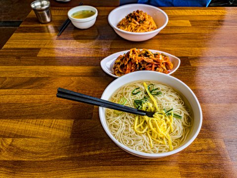김치와 잔치국수를 같이 먹으면 아주 맛있어요.
