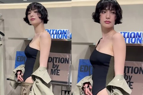 이날 나나는 한쪽 어깨가 드러나는 바디수트에 랩스커트 스타일로 겹쳐진 와이드 팬츠를 매치해 세련된 무드를 연출했다. 여기에 오버사이즈 코트를 걸쳐 감각적인 스타일링을 완성했다. 특히 움직일 때마다 자연스럽게 드러나는 치골 라인이 섹시한 매력을 더했다.