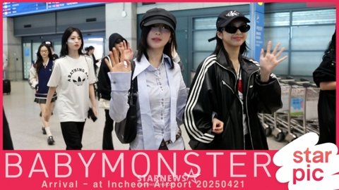 그룹 베이비몬스터(BABYMONSTER) 치키타, 루카, 파리타, 아사, 아현, 라미, 로라가 해외 일정을 마치고 21일 오후 인천국제공항을 통해 입국하고 있다. 2025.04.21