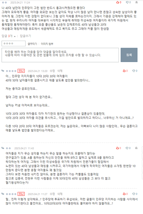 저 사람 말처럼 진짜 10대 20대 30대 여자들은 법으로 40대 50대 남자들이랑 결혼시켜서 애기 낳도록하는게