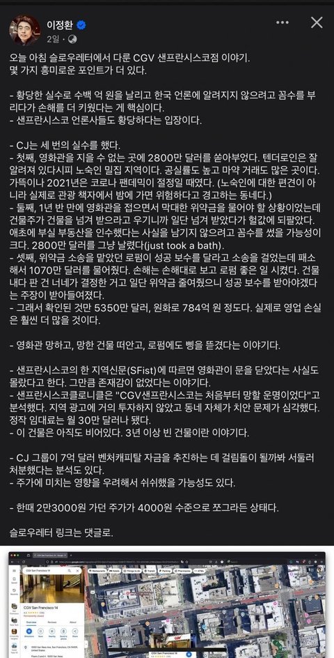 한국에서 하던 버릇 못 버리고 발광하다 돈날린 cgv