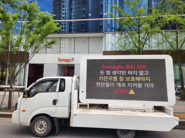 그룹 아스트로 멤버이자 배우 차은우의 해외 팬들이 소속사에 '아티스트 보호'를 요청하며 트럭 시위를 진행 중이다.