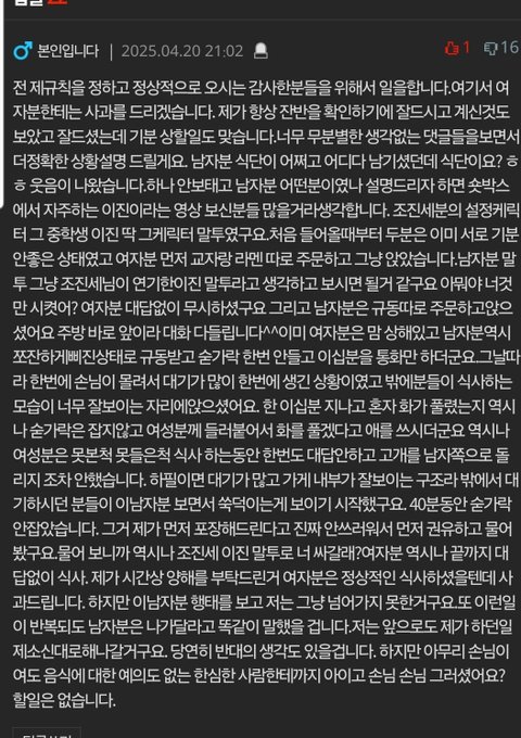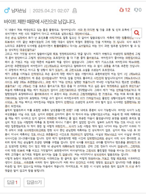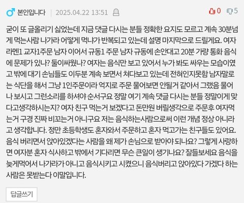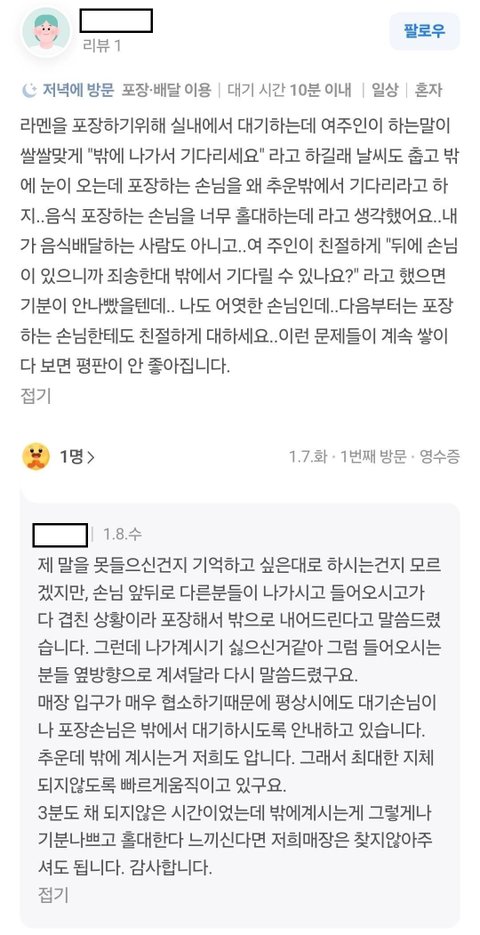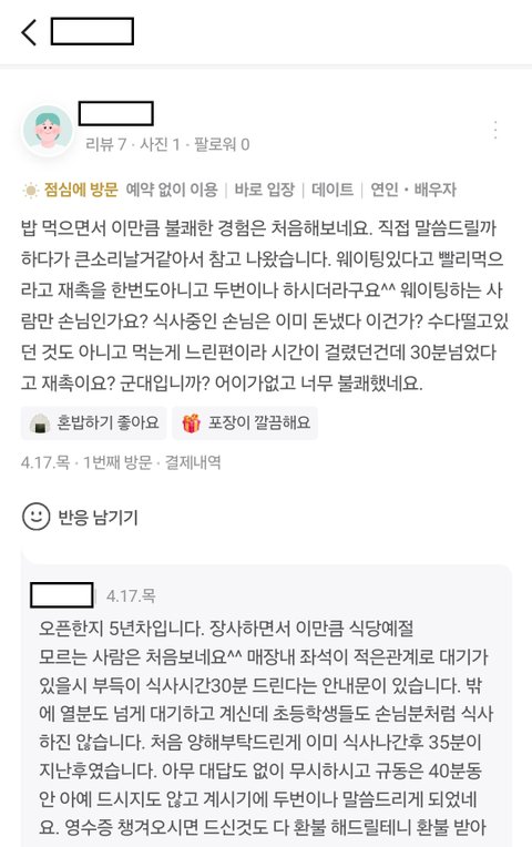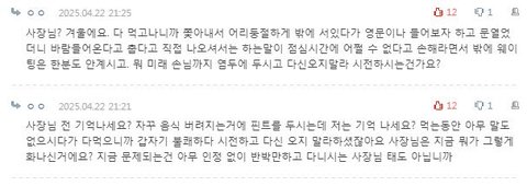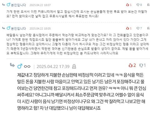 사장의 댓글을 보고 남긴 ㄴㅇㅂ 리뷰 당사자 손님의 댓글.
