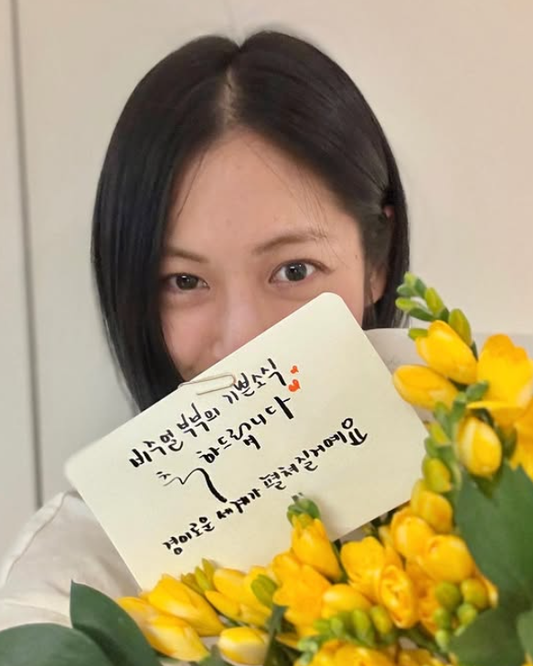 공개된 사진에는 태아의 초음파 사진이 담겨 있어 눈길을 끈다. 이어지는 사진 속 반소영이 들고 있는 커다란 꽃다발에는 '비주얼 부부의 기쁜 소식 축하드립니다. 경이로운 세계가 펼져칠 거예요'라고 적힌 카드가 꽂혀 있다.