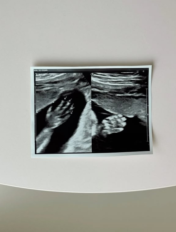 공개된 사진에는 태아의 초음파 사진이 담겨 있다. 또 다른 사진 속 반소영은 '비주얼 부부의 기쁜 소식 축하드립니다. 경이로운 세계가 펼쳐질 거예요'라고 적힌 카드와 함께 아름다운 꽃다발을 들고 있다.