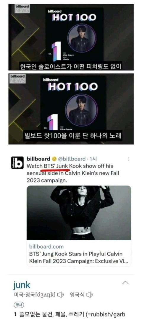하이브가 일 열심히 하는건 방시혁 아들 정국밖에 없음 지민 미국전시회 굿즈수익 정국꺼로 빼돌리고 혼자 에어 받아쳐먹고도 겨우 19주 90위따리밖에 못한 빌보드는 대단한것처럼 단독으로 기사 ㅈㄴ 내줌