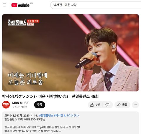(사진3 설명) 박서진(パクソジン) - 미운 사랑(憎い恋)|한일톱텐쇼 45회