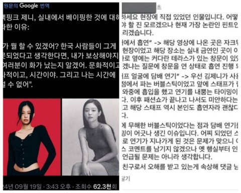 근데 제니가 과연 스태프한테 담배연기를 내뿜은건
