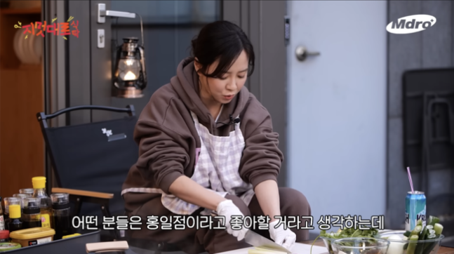이날 게스트로 등장한 송지효는 지예은과 편한 분위기 속에 이야기를 이어갔다. 지예은은 마시멜로우를 구워 먹으며 “제가 ‘기안장’에서는 손으로 음식 먹고 그랬다”고 말했고, 송지효는 “여기서 다른 프로그램 얘기해도 되냐”고 물었다.
