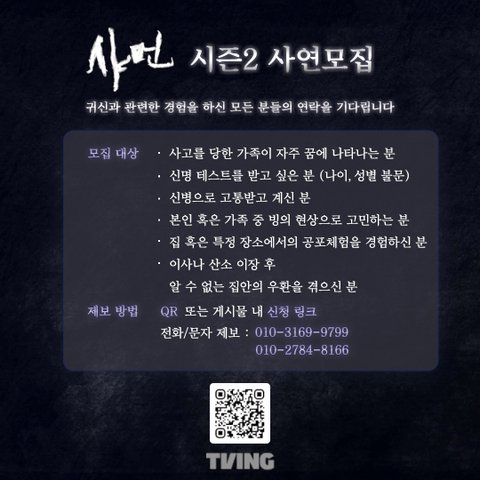 [기묘한 경험의 예]- 사고를 당한 가족이 자주 꿈에 나타나는 분- 이사나 산소 이장 후 알 수 없는 집안의 우환을 겪으신 분- 신명 테스트를 받고 싶은 분 (나이, 성별 불문) - 신병으로 고통받고 계신 분- 본인 혹은 가족 중 빙의 현상으로 고민하는 분 - 집 혹은 특정한 장소에서의 공포체험