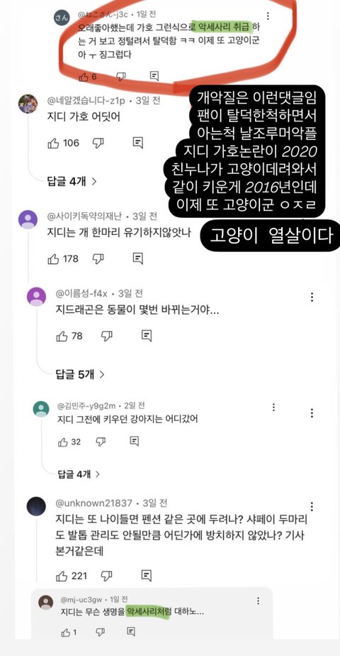 물론 새로운 지디악플들도 질새라 계속해서 달리는중임