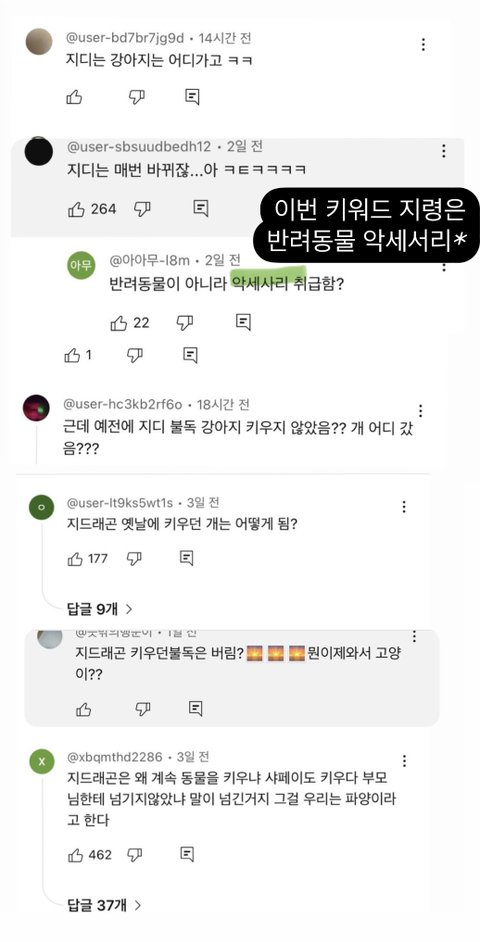***일부만 가져온거고 275개의 댓글중 지디얘기로 반을 도배함
