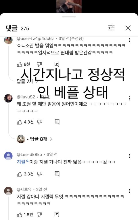 시간이 지나고 조회수가 쌓이자 당연하게도 쇼츠에서 재밌었던 내용으로 베플이 갈아치워짐,